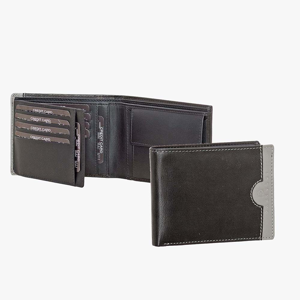 Δερμάτινο ανδρικό πορτοφόλι BARTUGGI με 12 θέσεις για κάρτες, 2 θέσεις για χαρτονομίσματα και 6 επιπλέον εσωτερικές θήκες για ταυτότητα, δίπλωμα ή φωτογραφία. Διαθέτει εξωτερικά τσέπη κερμάτων με φερμουάρ στο πίσω μέρος.