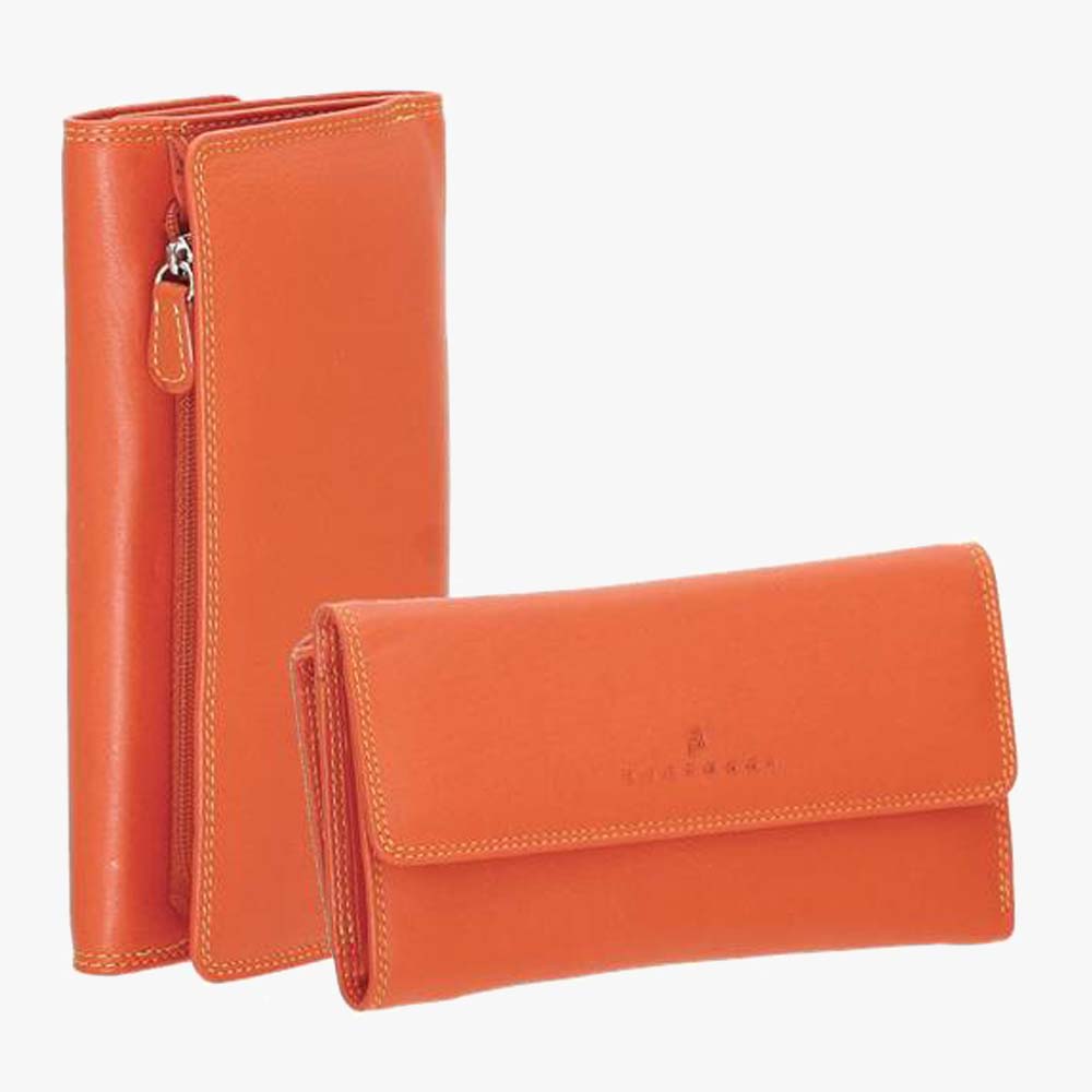 Γυναικείο δερμάτινο πορτοφόλι BARTUGGI σε έντονα χρώματα με λεπτομέρειες από γαζί.