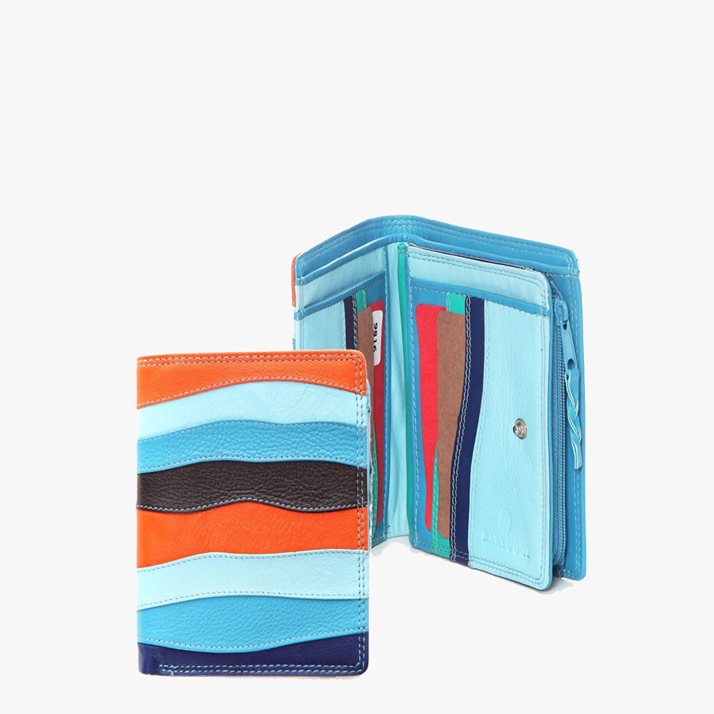 Γυναικείο πολύχρωμο δερμάτινο πορτοφόλι BARTUGGI σε έντονα χρώματα με λεπτομέρειες από τρυπητή δαντέλα.