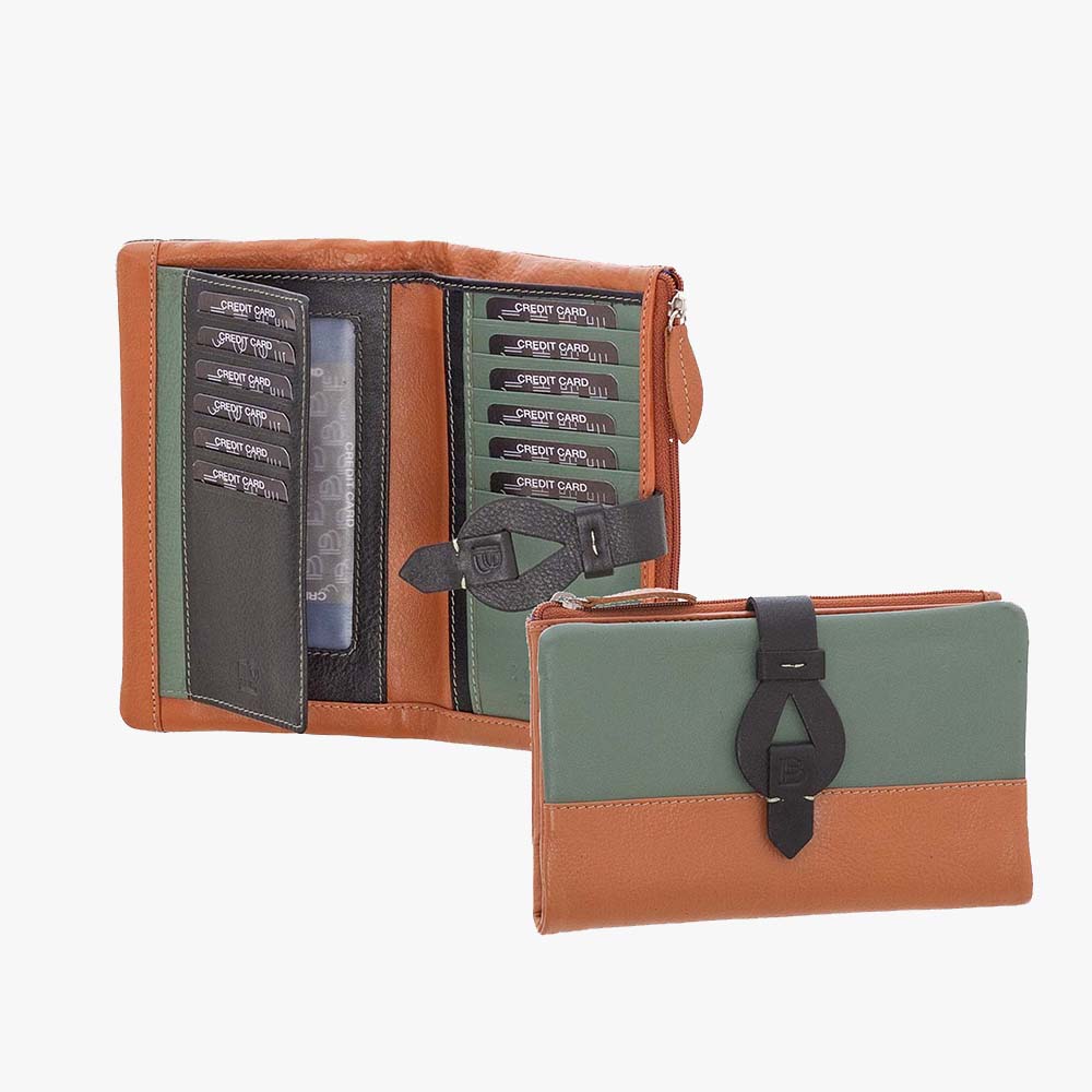Γυναικείο δερμάτινο πορτοφόλι BARTUGGI σε έντονα χρώματα από μαλακό δέρμα, με εξωτερική τσέπη κερμάτων με φερμουάρ.