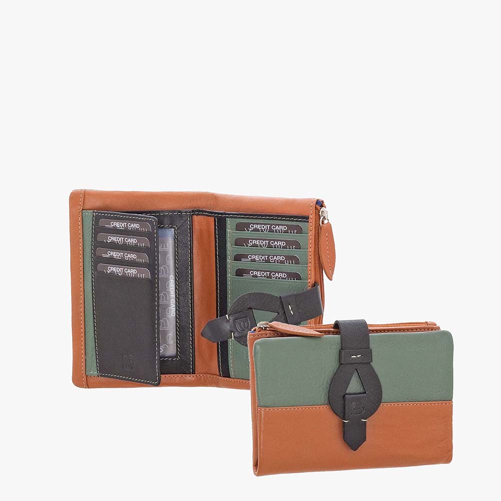 Γυναικείο δερμάτινο πορτοφόλι BARTUGGI σε έντονα χρώματα από μαλακό δέρμα, με εξωτερική τσέπη κερμάτων με φερμουάρ.