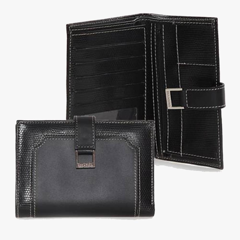 Γυναικείο δερμάτινο πορτοφόλι με λεπτομέρειες από κροκό υλικό.