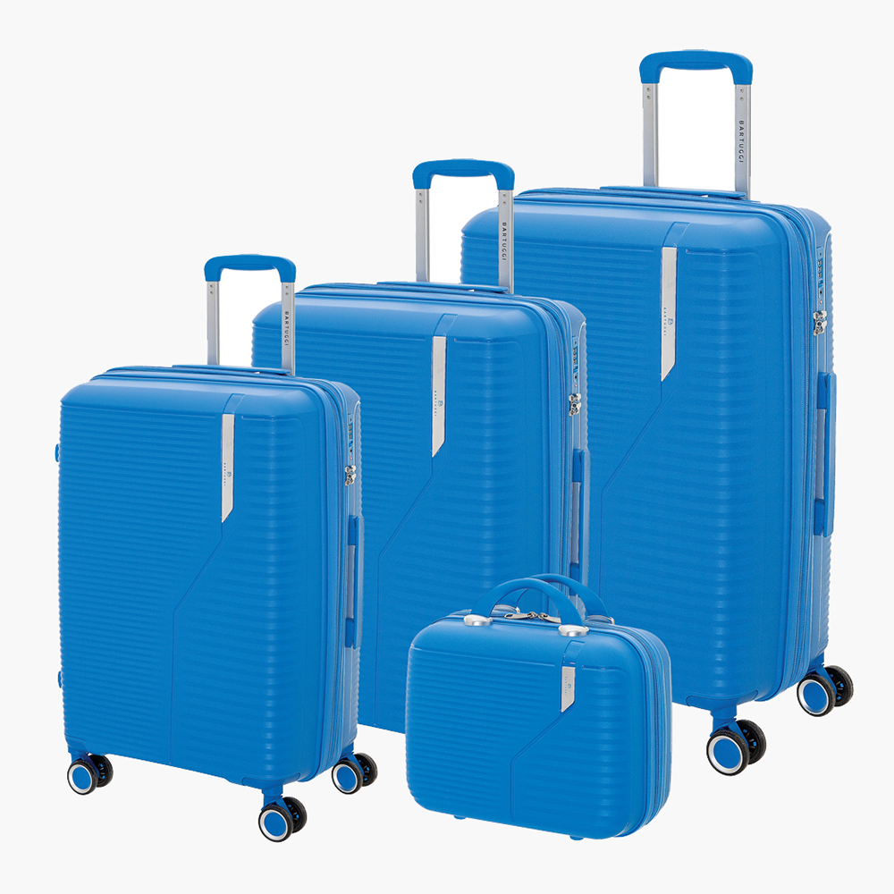 Σετ ταξιδίου της BARTUGGI 4 τεμαχίων, κατασκευασμένο από ελαφρύ και ανθεκτικό σκληρό υλικό (PP), που αποτελεί την ιδανική επιλογή για κοντινά ή μακρινά ταξίδια. Το σετ περιλαμβάνει βαλίτσες σε τρία μεγέθη (μεγάλη, μεσαία, μικρή), καθώς και ένα beauty case. Κάθε βαλίτσα διαθέτει εργονομικές λαβές στο επάνω και στο πλαϊνό μέρος, καθώς και 4 ρόδες που στρίβουν 360 μοίρες, προσφέροντας απόλυτη ευκολία στη μεταφορά προς όλες τις κατευθύνσεις. Όλες οι βαλίτσες ανοίγουν κυκλικά με φερμουάρ, διευκολύνοντας την πρόσβαση στο εσωτερικό. Η μία εσωτερική πλευρά διαθέτει προσαρμοζόμενους ιμάντες χιαστί για να κρατά τα αντικείμενά σας σταθερά, ενώ η άλλη πλευρά κλείνει με φερμουάρ και περιλαμβάνει δύο επιπλέον τσέπες, μία εκ των οποίων με δίχτυ, για καλύτερη οργάνωση μικροαντικειμένων. Επιπλέον, κάθε βαλίτσα είναι εξοπλισμένη με ενσωματωμένη κλειδαριά TSA με τριπλό συνδυασμό στο πλαϊνό μέρος, προσφέροντας μέγιστη ασφάλεια. Το σουφλέ επέκτασης χώρου προσθέτει περιμετρικά 4 επιπλέον εκατοστά χωρητικότητας, καθιστώντας τις βαλίτσες ακόμα πιο πρακτικές. Προστατευτικά τακουνάκια προσφέρουν επιπλέον αντοχή και προστασία κατά τις μεταφορές. Απολαύστε άνετα και οργανωμένα ταξίδια με αυτό το ολοκληρωμένο σετ βαλιτσών.