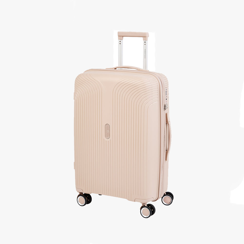Μια ιδανική επιλογή για ταξίδια με ισορροπία μεταξύ χωρητικότητας και ευκολίας μεταφοράς, αυτή η μεσαία βαλίτσα συνδυάζει λειτουργικότητα και κομψότητα. Κατασκευασμένη από ανθεκτικό πολυπροπυλένιο (PP), εξασφαλίζει προστασία και αντοχή στον χρόνο. Το εσωτερικό της διαθέτει δύο ξεχωριστούς χώρους με διαχωριστικό, επιτρέποντας σωστή οργάνωση των αποσκευών, ενώ περιλαμβάνει δύο τσέπες με φερμουάρ (μία διχτυωτή) και ελαστικούς ιμάντες χιαστί για ασφαλή συγκράτηση. Διαθέτει επάνω και πλαϊνή λαβή για άνετη μεταφορά, τέσσερις διπλές ρόδες για εύκολη κύλιση και προστατευτικά τακουνάκια για μεγαλύτερη αντοχή. Η ενσωματωμένη TSA κλειδαριά τριπλού συνδυασμού προσφέρει ασφάλεια, ενώ το επεκτεινόμενο σύστημα αυξάνει τον διαθέσιμο χώρο έως και 4 εκ. Οι matching colour λεπτομέρειες προσθέτουν μια μοντέρνα και κομψή αισθητική.