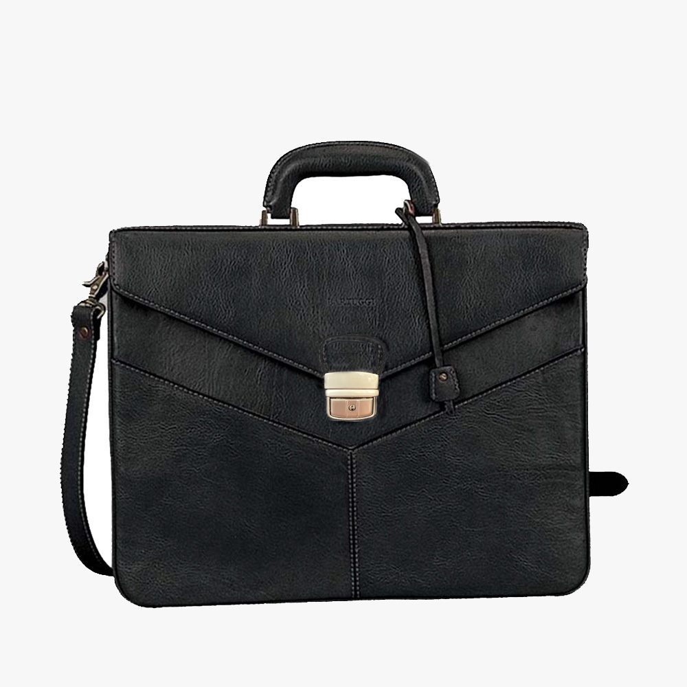 Ανδρικός χαρτοφύλακας BARTUGGI από δερματίνη με 2 εσωτερικές θέσεις και μια έξτρα θήκη που κλείνει με φερμουάρ, κατάλληλες για μεταφορά εγγράφων μεγέθους Α4. Επιπλέον έχει μια ακόμα θήκη στο μπροστινό μέρος κάτω από το καπάκι και μια εξωτερική στο πίσω μέρος. Διαθέτει θέσεις για κινητό, στυλό, κάρτες, κλπ, καθώς και ιμάντα ώμου. Διαστάσεις: 39 x 31 x 10 εκ.