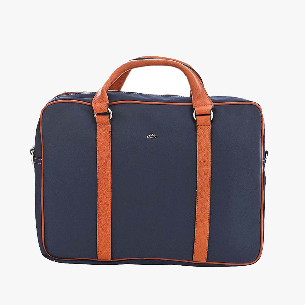 Πρακτική επαγγελματική τσάντα από ύφασμα και δέρμα με μεγάλη χωρητικότητα για να μεταφέρετε εύκολα έγγραφα ή ένα μικρό laptop. Διαθέτει εσωτερικά 2 χώρους, εκ των οποίων ο ένας έχει ειδική θήκη για laptop, 3 τσεπάκια, εκ των οποίων το ένα κλείνει με φερμουάρ, ενώ εξωτερικά στο πίσω μέρος έχει μια ακόμα τσέπη και επιπλέον ιμάντα ώμου. Αυτός ο κομψός χαρτοφύλακας θα καλύψει τις επαγγελματικές σας ανάγκες με στυλ. Διαστάσεις: 39,5 x 29 x 8 εκ.