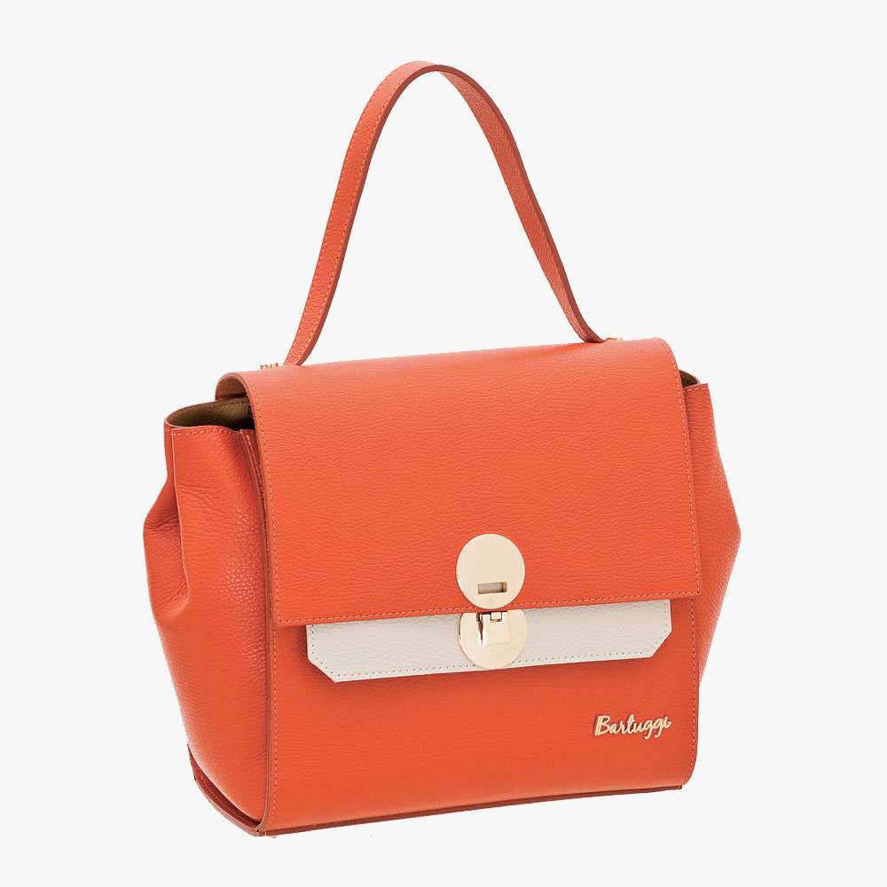 Δερμάτινη τσάντα με 2 διαφορετικά καπάκια, ώστε να τα αλλάζετε ανάλογα με τη διάθεσή σας. Δίχρωμη σε έντονους συνδυασμούς χρωμάτων, διατίθεται με έξτρα ιμάντα ώμου.
