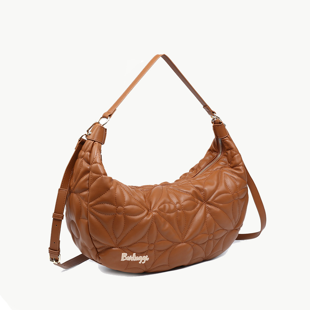 Αυτή η τσάντα της Bartuggi έχει ένα ευρύχωρο σχήμα που θυμίζει γόνδολα, προσδίδοντας μια αίσθηση μοναδικότητας. Η ανάγλυφη υφή με τα κεντημένα λουλούδια προσθέτει μια ξεχωριστή αισθητική και πολυτέλεια. Εσωτερικά, υπάρχουν τρία τσεπάκια για να οργανώσετε τα προσωπικά σας αντικείμενα, με ένα από αυτά να κλείνει με φερμουάρ. Διαθέτει επίσης έναν ιμάντα ώμου για άνετη μεταφορά, προσθέτοντας στην κλασική και πολυτελή αίσθηση αυτής της τσάντας.
