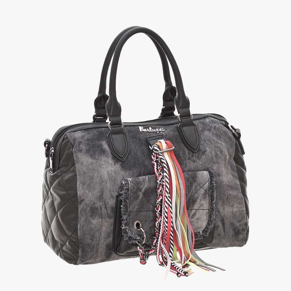 Ευρύχωρη γυναικεία τσάντα BARTUGGI από τζιν με διακοσμητικά χρωματιστά σκοινάκια, μπροστινή τσέπη και έξτρα ιμάντα ώμου.