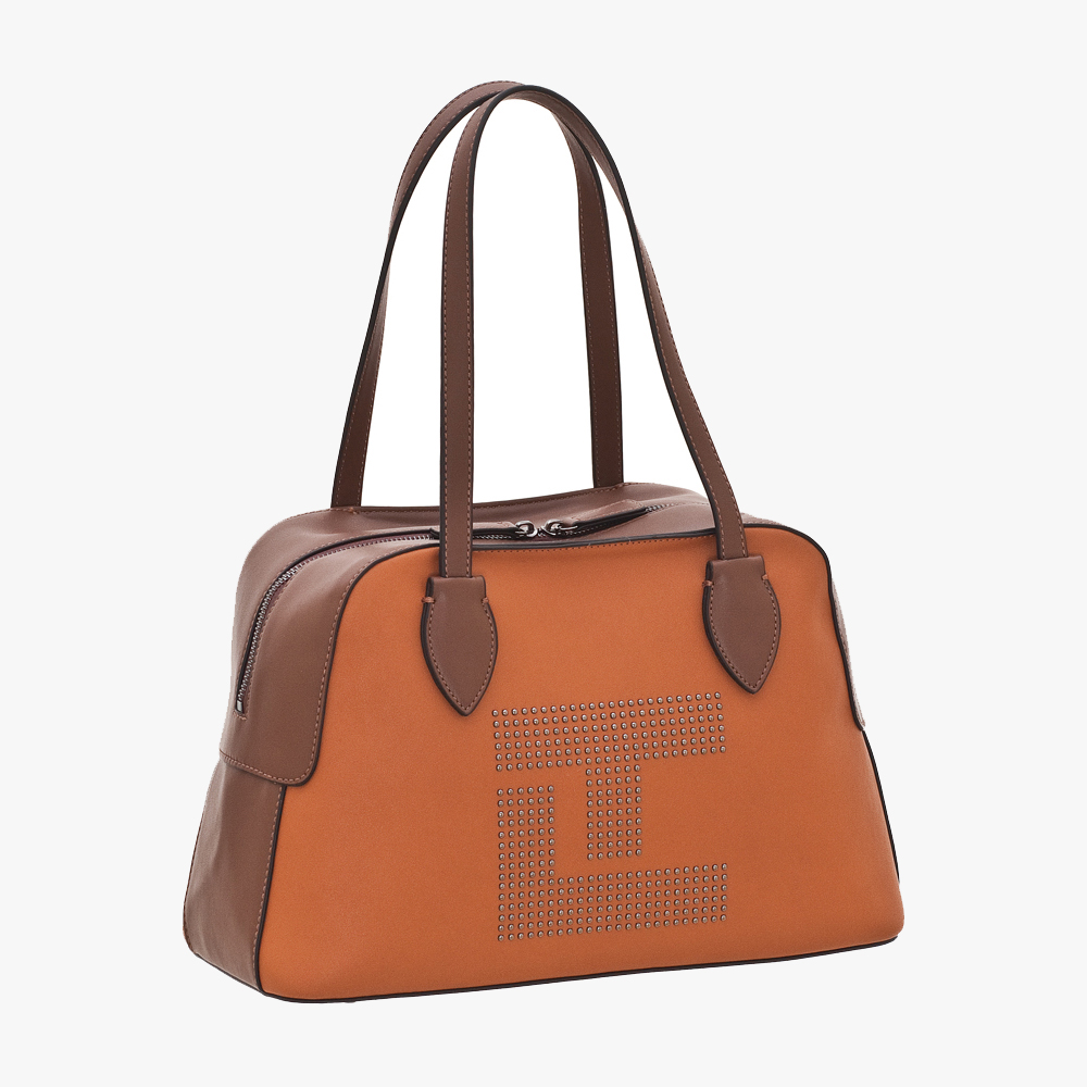Ted Lapidus εντυπωσιακή δίχρωμη τσάντα, διακοσμημένη με μεταλλικά στοιχεία που σχηματίζουν το λογότυπο