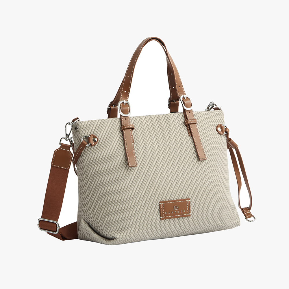 Μια ευρύχωρη και πρακτική γυναικεία τσάντα Bartuggi που συνδυάζει στυλ και λειτουργικότητα. Διαθέτει τρία εσωτερικά τσεπάκια, εκ των οποίων το ένα κλείνει με φερμουάρ, και ένα εξωτερικό φερμουάρ στο πίσω μέρος για εύκολη πρόσβαση στα απαραίτητα αντικείμενα. Τα διπλά χεράκια και ο επιπλέον αποσπώμενος ιμάντας ώμου προσφέρουν πολλαπλές επιλογές φορέματος, ενώ το minimal και κομψό design την καθιστούν ιδανική για καθημερινή χρήση και όχι μόνο. Οι ουδέτερες αποχρώσεις (Μαύρο, Μπεζ, Τόπο) ταιριάζουν εύκολα με κάθε outfit.