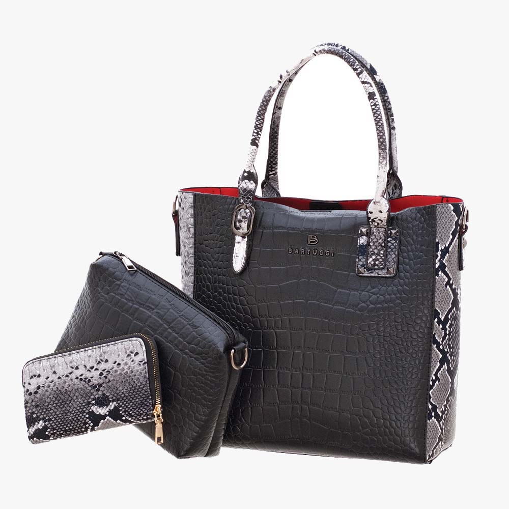 Διαχρονική τσάντα BARTUGGI με λεπτομέρειες από φίδι, εσωτερικό πορτοφολάκι και επιπλέον αποσπώμενο τσαντάκι που μπορεί να φορεθεί και μόνο τους ως ανεξάρτητο χιαστί. Διαθέτει μεγάλη χωρητικότητα και επιπλέον ιμάντα ώμου. Η ιδανική επιλογή για καθημερινές εμφανίσεις.