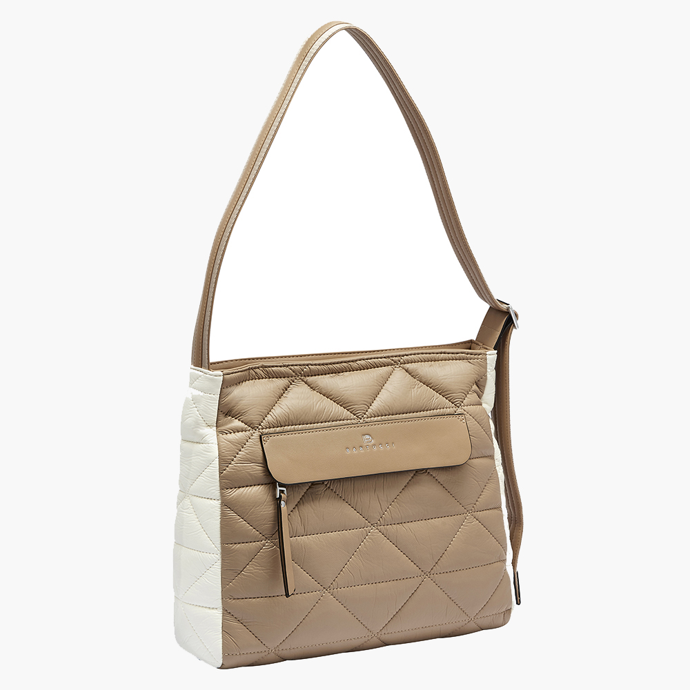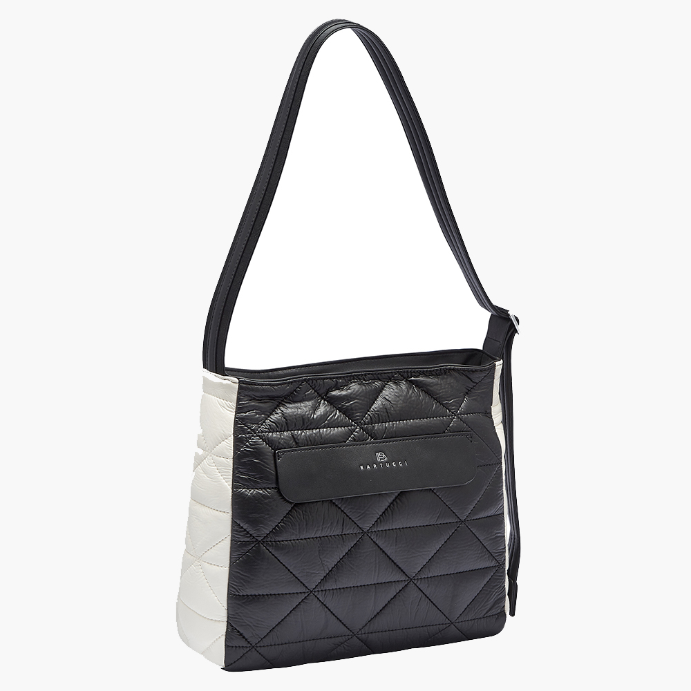Δίχρωμη, ευρύχωρη και πρακτική τσάντα χιαστί από την Bartuggi, με κομψό συνδυασμό χρωμάτων και πρωτοποριακό υλικό με εξαιρετικά απαλή υφή σε καπιτονέ pattern. Ιδανική για όλες τις ώρες της ημέρας. Εσωτερικά διαθέτει 3 τσέπες, με τη μία να κλείνει με φερμουάρ. Εξωτερικά, περιλαμβάνει 1 τσέπη μπροστά, κάτω από το καπάκι, που κλείνει με φερμουάρ, καθώς και 1 τσεπάκι πίσω με φερμουάρ. Διαθέτει φανέλα αποθήκευσης και ιμάντα με προσαρμοζόμενο μήκος για ευκολία και άνεση.