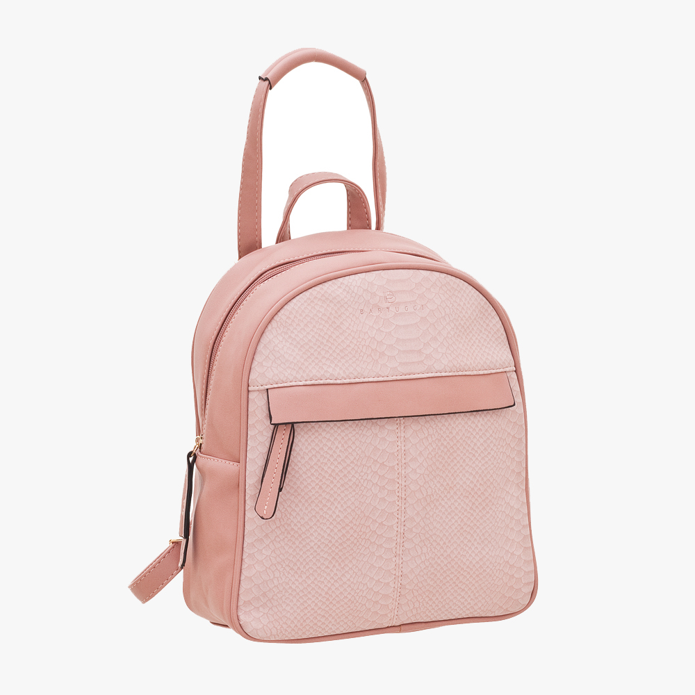 Γυναικείο, ευρύχωρο σακίδιο BARTUGGI με λεπτομέρειες από ανάγλυφο υλικό. Διαθέτει ιδανικό μέγεθος και σχήμα, εσωτερικά έχει τσεπάκια- το 1 με φερμουάρ- και εξωτερικά ένα τσεπάκι με φερμουάρ στο μπροστινό μέρος.