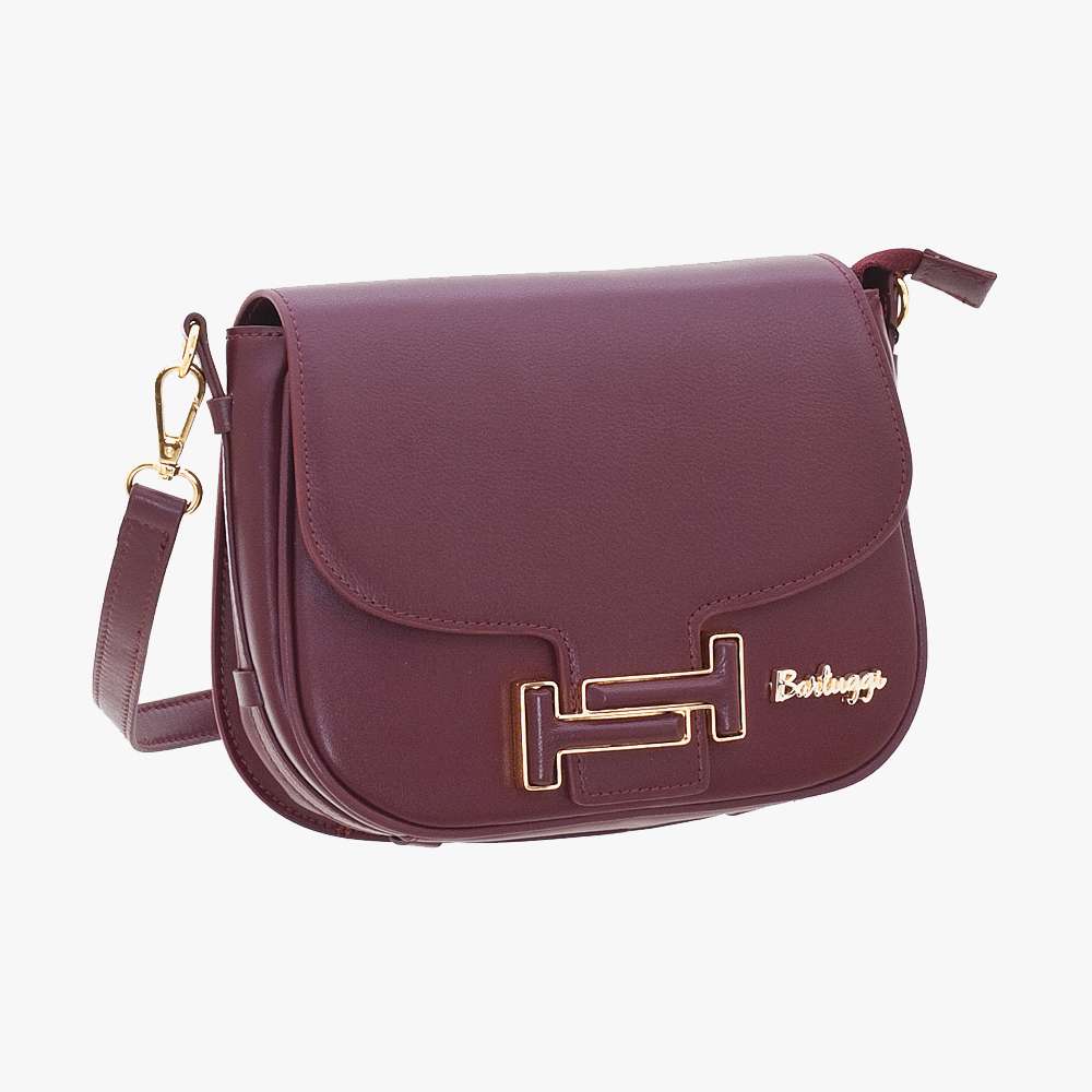 Δερμάτινο τσαντάκι χιαστί με καπάκι με ιδιαίατερο χρυσό κούμπωμα, τσεπάκι στο πίσω μέρος και 2 διαφορετικούς τύπους ιμάντα (από ύφασμα και από δέρμα).