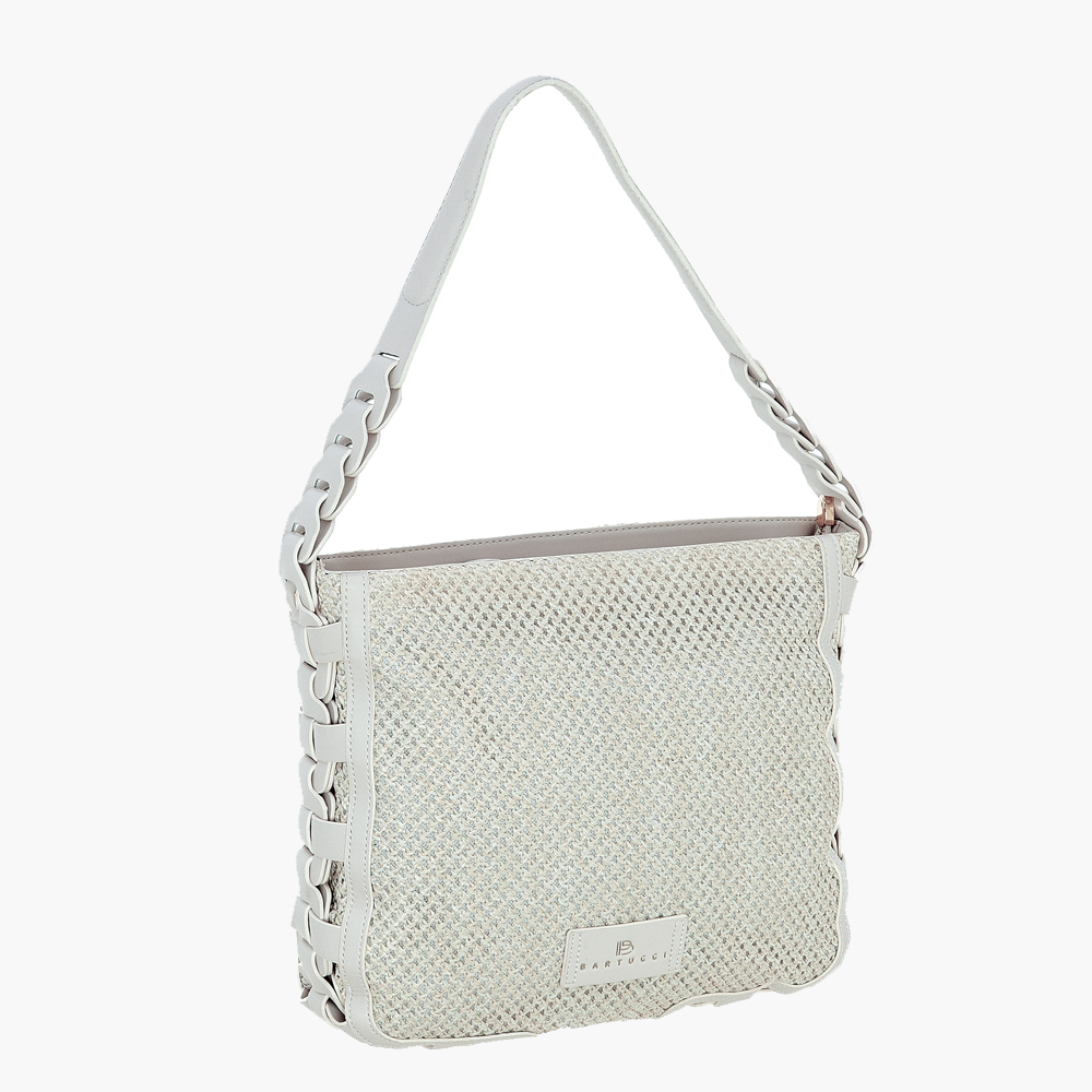 Τσάντα κόσμημα της BARTUGGI που φοριέται χιαστί, συνδυάζοντας την άνεση του υφασμάτινου υλικού με την πολυτέλεια των περίτεχνων δερμάτινων λεπτομερειών. Με επιπλέον ιμάντα ώμου για επιπλέον άνεση, αυτή η τσάντα δημιουργεί μια εντυπωσιακή εικόνα.