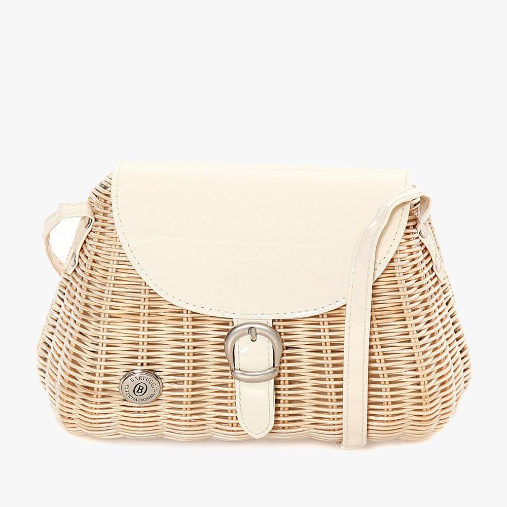 Ψάθινη γυναικεία τσάντα καλαθάκι με καπάκι από γυαλιστερό υλικό. Έχει εσωτερική τσέπη και λουρί από αλυσίδα. Διαχρονικό σχέδιο που είναι πάντα στην μόδα.
