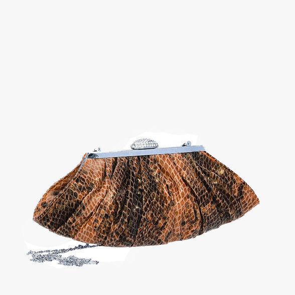 Φακελάκι BARTUGGI με pattern φιδιού σε πολλά χρώματα. Διαθέτει αλυσιδίτσα για να φοριέται και στον ώμο και διακοσμείται με κούμπωμα πέτρα.